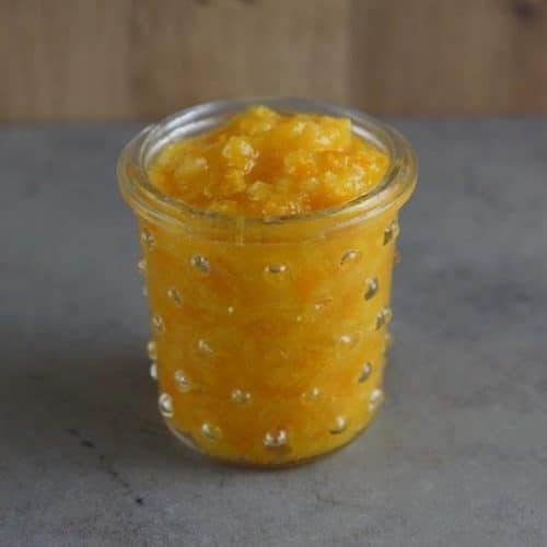 Lækker råsyltet appelsin-abrikos marmelade.