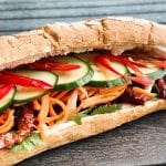 Banh Mi er en vietnamesisk sandwich, der kombinerer sprødt baguette med krydret kød, syltede grøntsager og friske urter. I denne opskrift bruger vi mørt, marineret svinekød, som giver masser af smag og en perfekt balance mellem sødt, salt og umami.