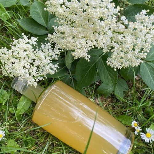 Hjemmelavet hyldeblomstsaft uden citronsyre