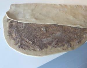 - Rul dejen ud i til en aflang plade som på billedet.