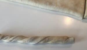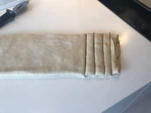 - Gentag med den anden side,som lægges ind over den første, så du nu har en aflang dejstang.