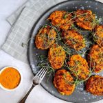 Opskrift på krydrede majsfrikadeller med hytteost og gulerødder