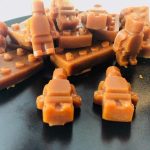 Lækre, hårde og faste flødekarameller. Karamellen minder lidt om karamellen i Daim chokolade. Vi har støbt dem i LEGO forme, så vi har karameller der er LEGO klodser og LEGO mænd. Børn og barnlige sjæle vil elske dem.