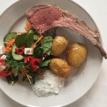 Opskrift på Lammekrone i ovn, serveret med rosmarinbagte kartofler, tzatziki og frisk spinat salat. Lammekronen er en af de fineste (og klart flotteste) udskæringer på et lam. Vi giver dig en simpel opskrift her på hvordan du ved hjælp af en ovn og lidt hviletid får en smuk og dejlig ret.